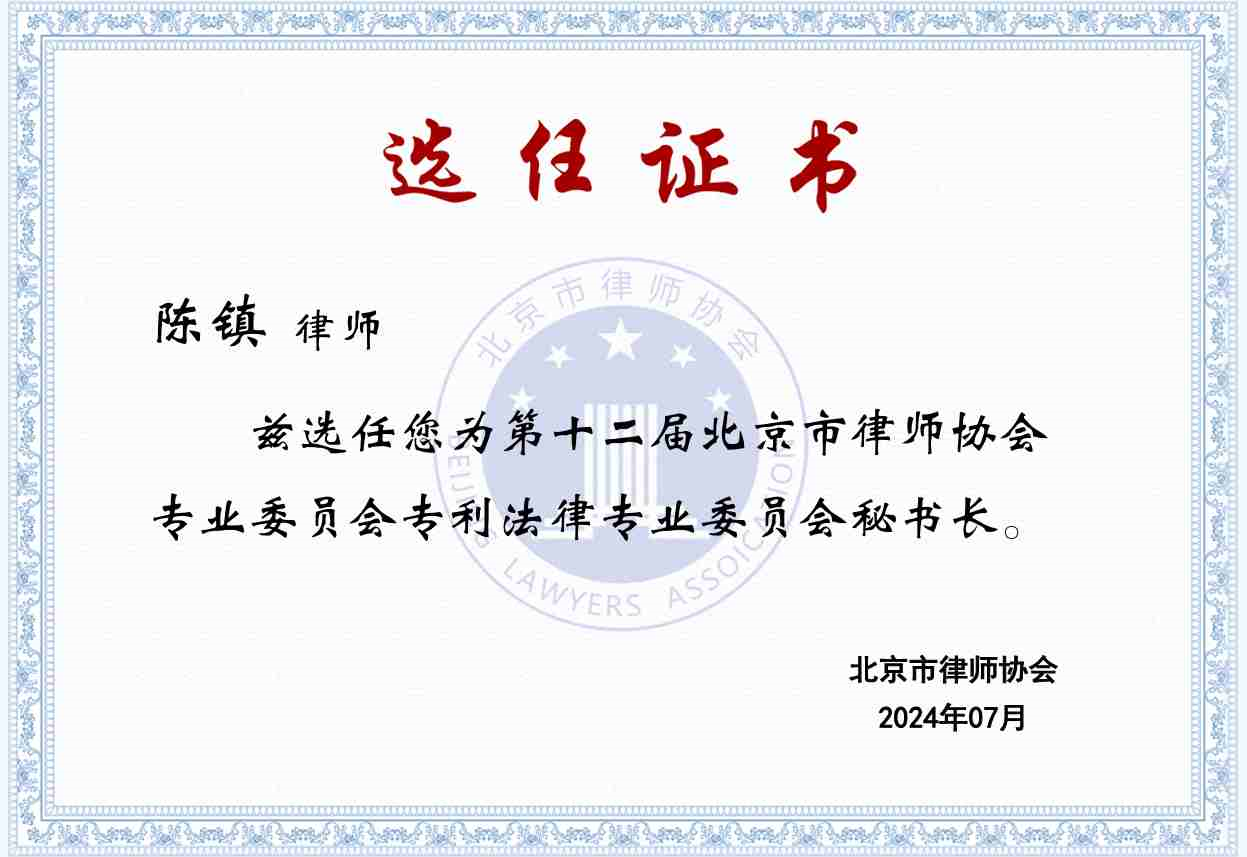 2025年7月30日,第十二届北京市律师协会专利法律专业委员会召开成立大会暨第一次全体委员会议在北京市律协召开,融君律所主任陈镇律师被推选为北京市律师协会专利法律委员会秘书长并出席成立大会。
